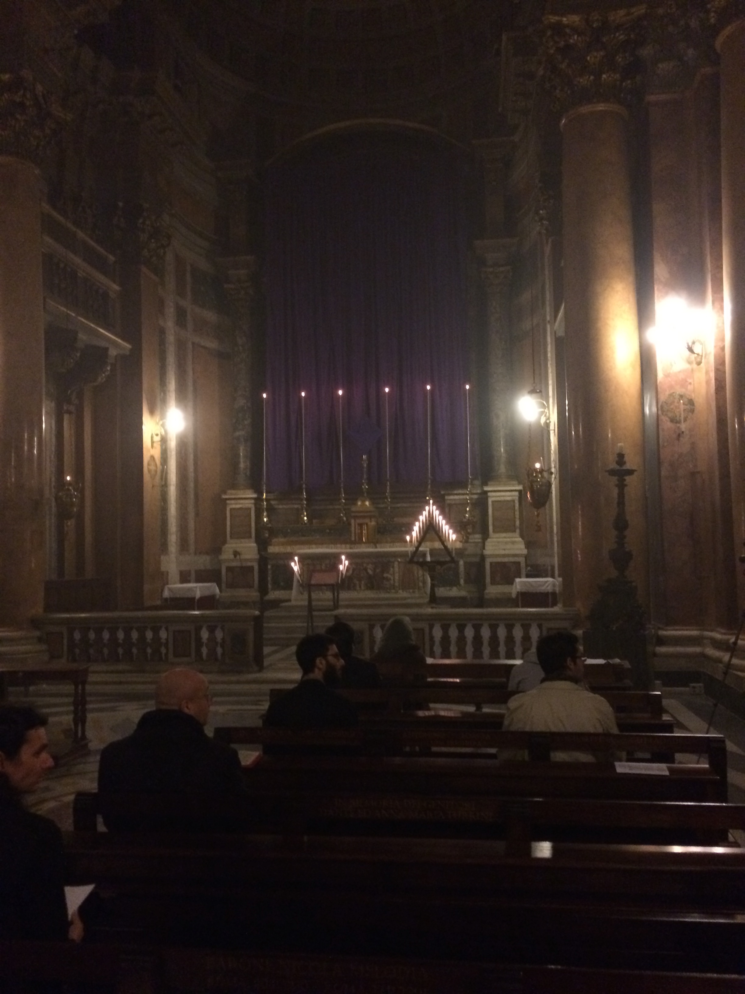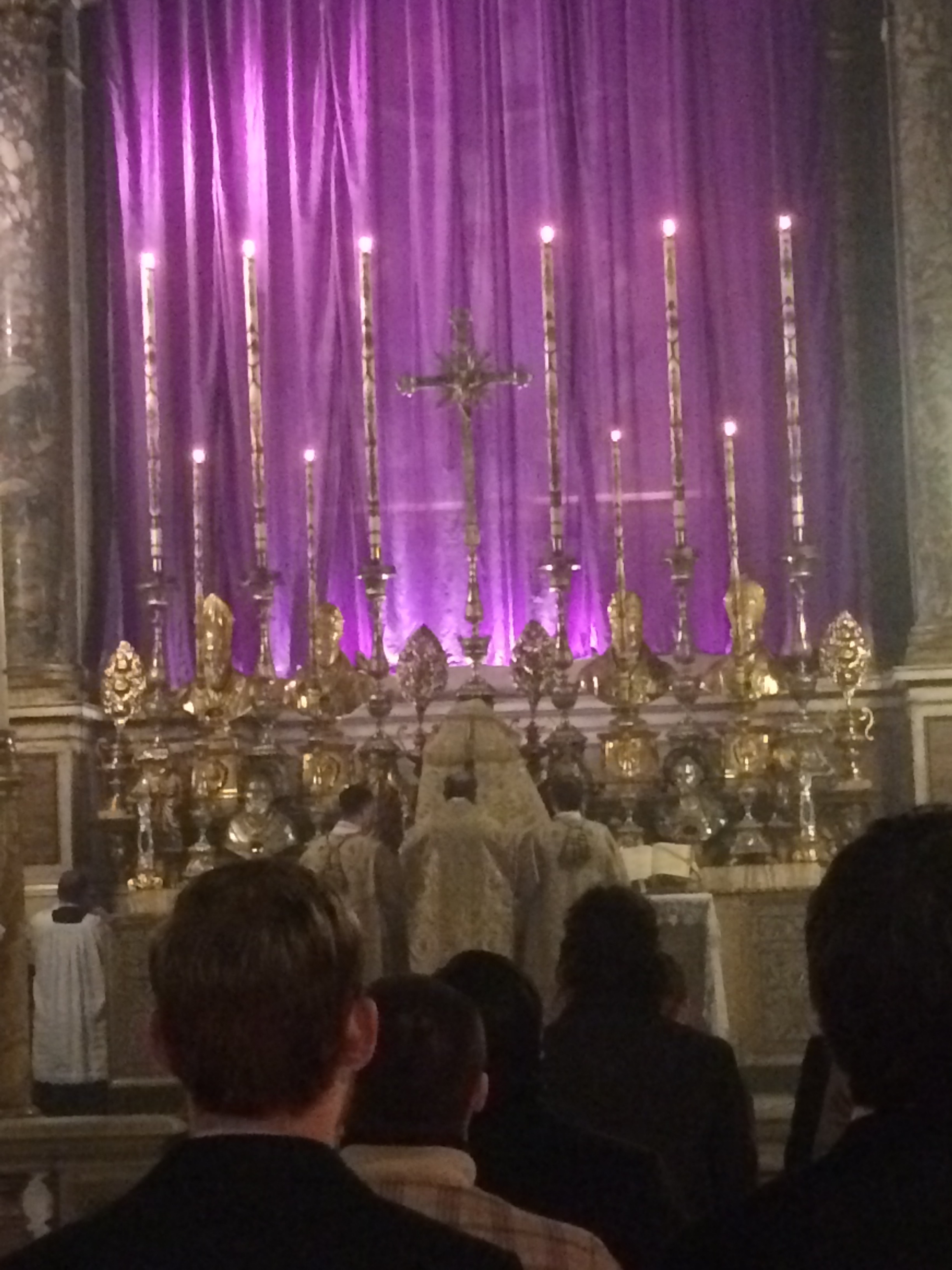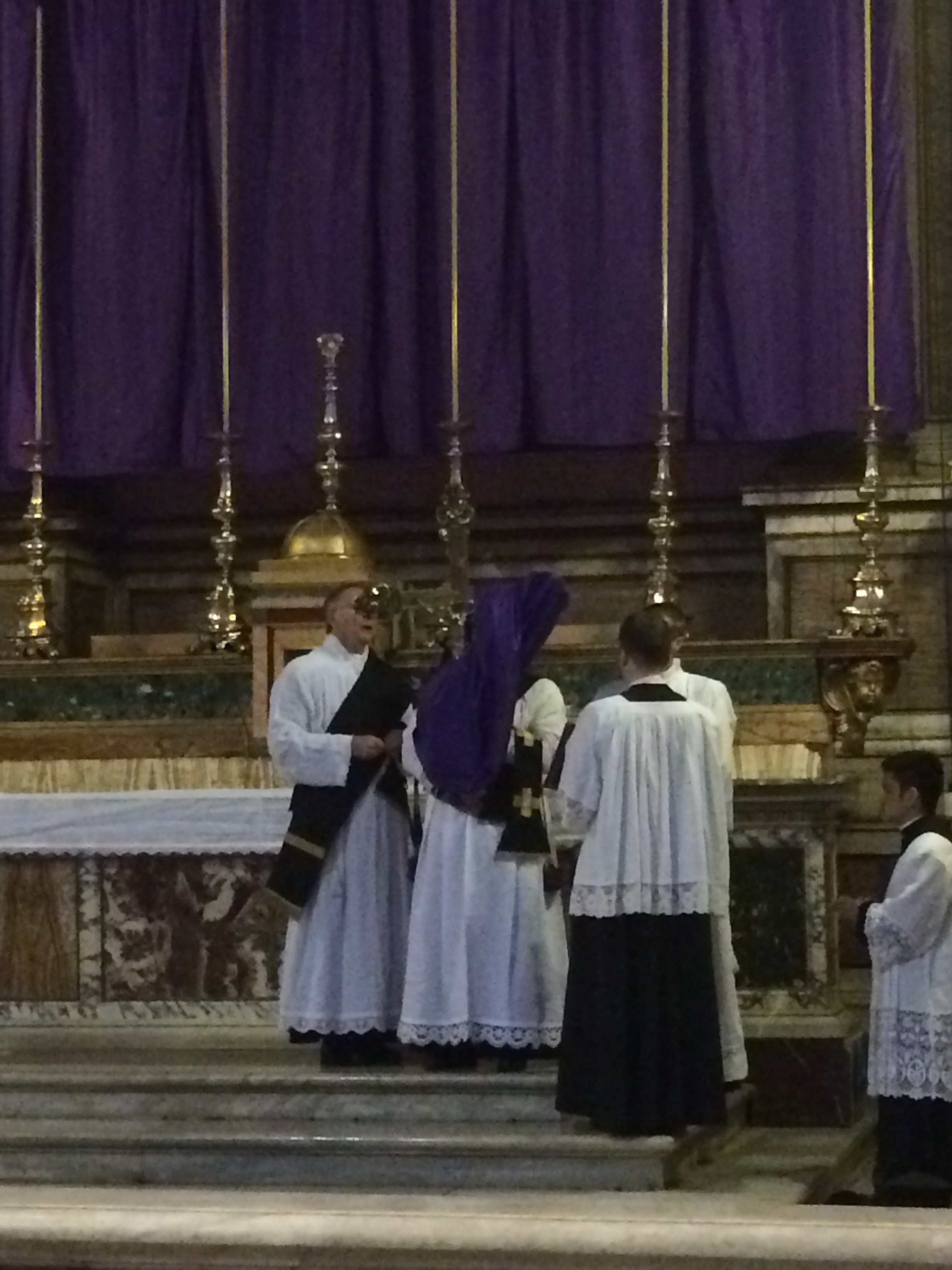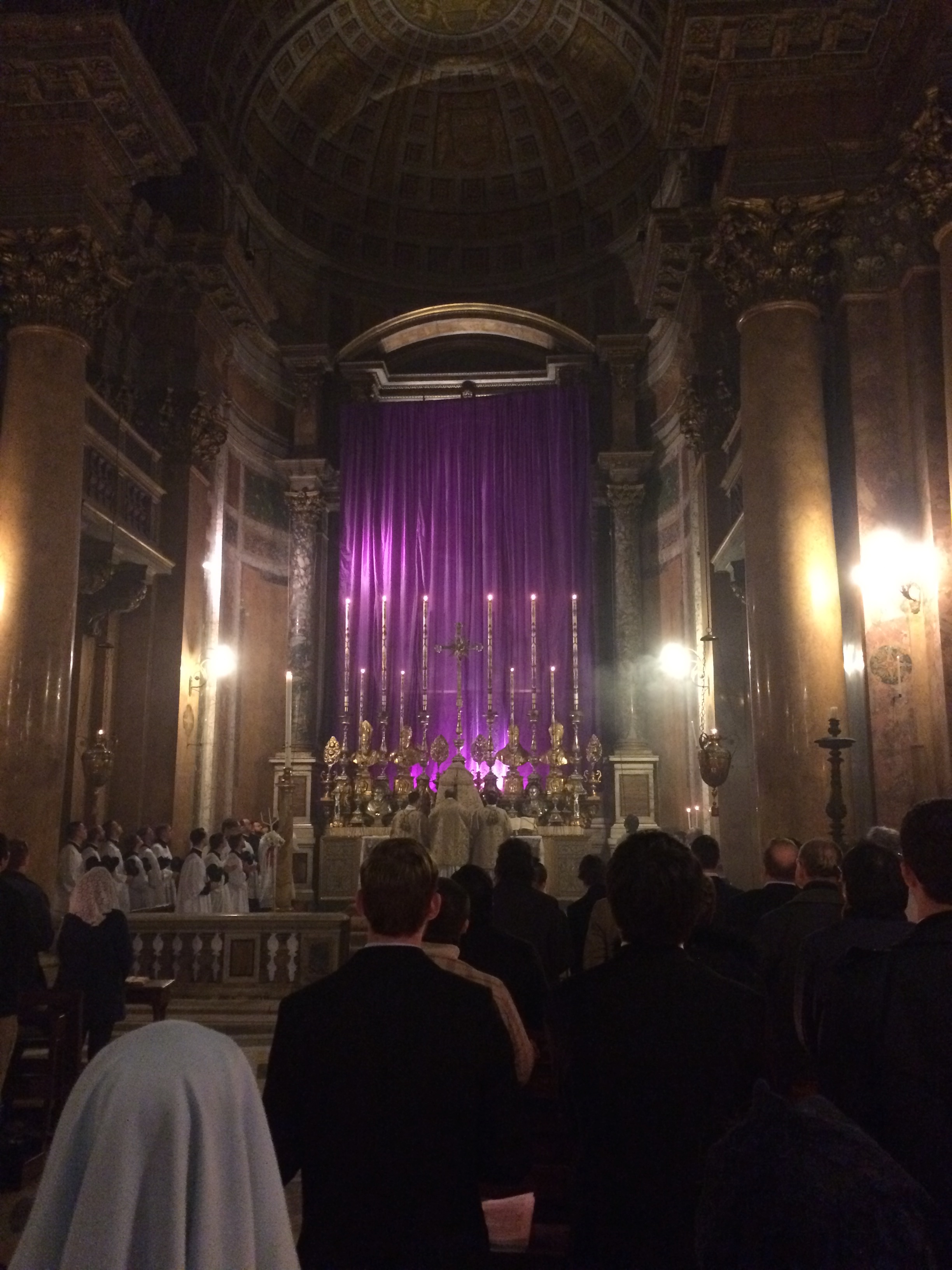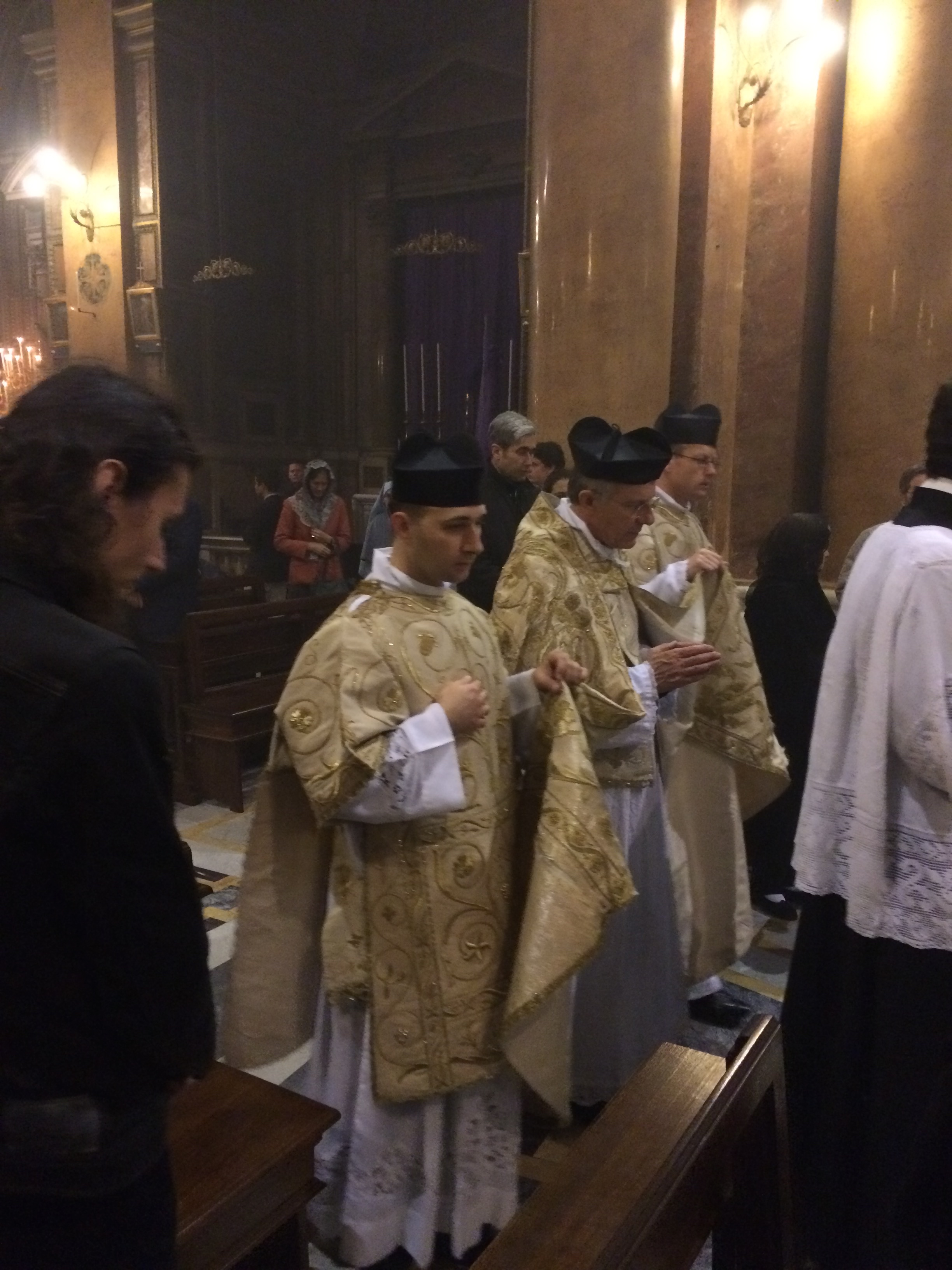 Nell’augurare a tutti i lettori una Santa Pasqua, pubblico alcune foto del Triduo pasquale in rito antico presso la Parrocchia Personale della SS.ma Trinità dei Pellegrini a Roma. Tutte le celebrazioni hanno visto una grandissima affluenza di fedeli, accorsi da più parti dell’Urbe e dell’Orbe, tanto che per trovare un posto era necessario raggiungere la Chiesa almeno mezz’ora prima dell’inizio delle celebrazioni. Questo è un evidente segno del fatto che la fedeltà alle rubriche non è solo un’inutile formalismo, ma anzi è molto apprezzata dai fedeli (e da Dio innanzitutto!), i quali spesso affrontano notevoli sacrifici economici e non solo per poter assistere a questi riti celebrati veramente come Dio comanda! Ci si augura che l’esempio degli ottimi e preparatissimi Sacerdoti e Ministranti della Parrocchia Personale della SS.ma Trinità dei Pellegrini sia seguito in tutte le Chiese in cui si applica il motu proprio «Summorum Pontificum» di Benedetto XVI.
