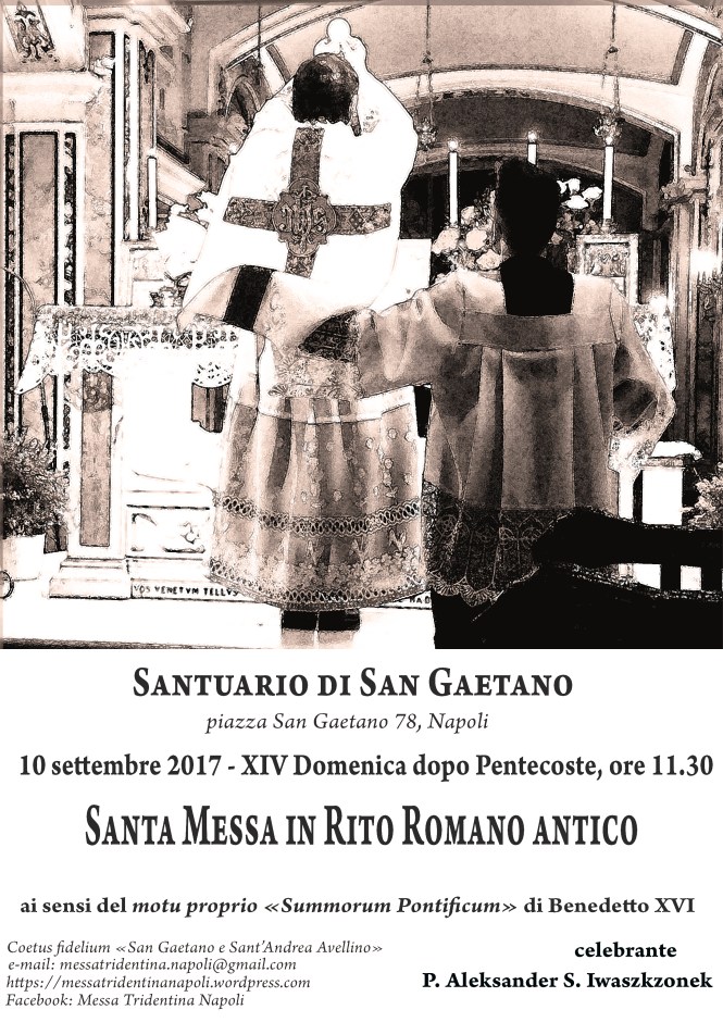 Napoli, Domenica 10 settembre 2017: S. Messa in Rito Romano antico (Santuario di San Gaetano)