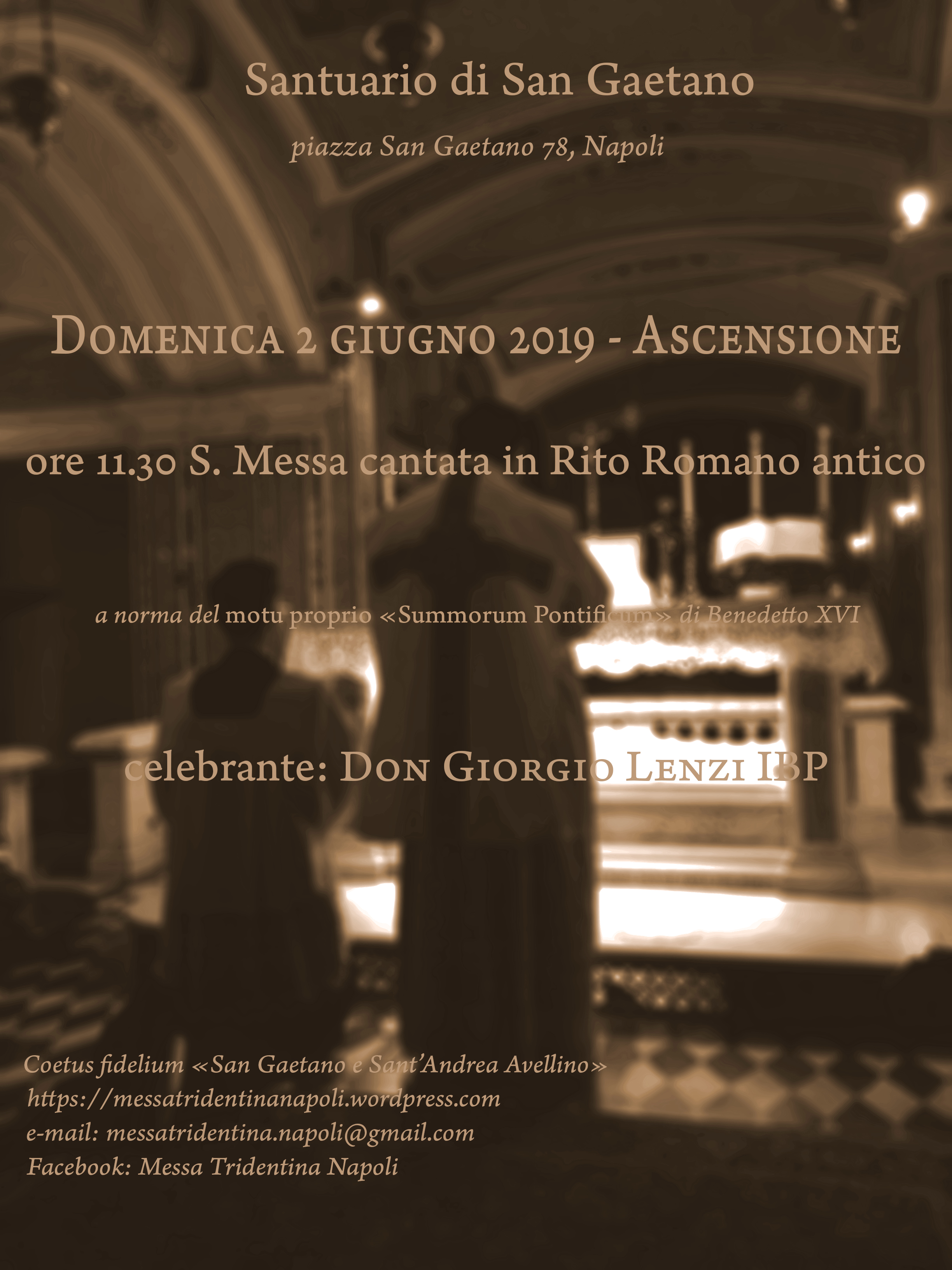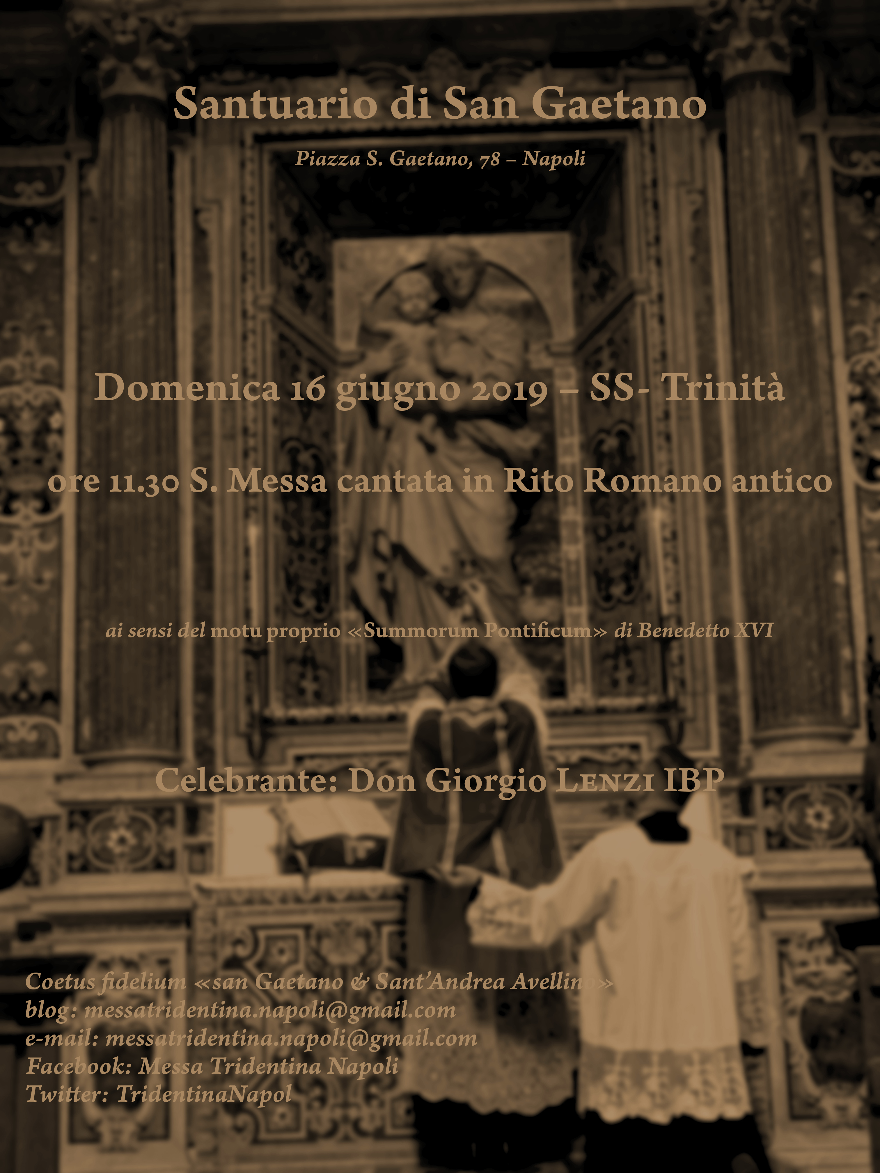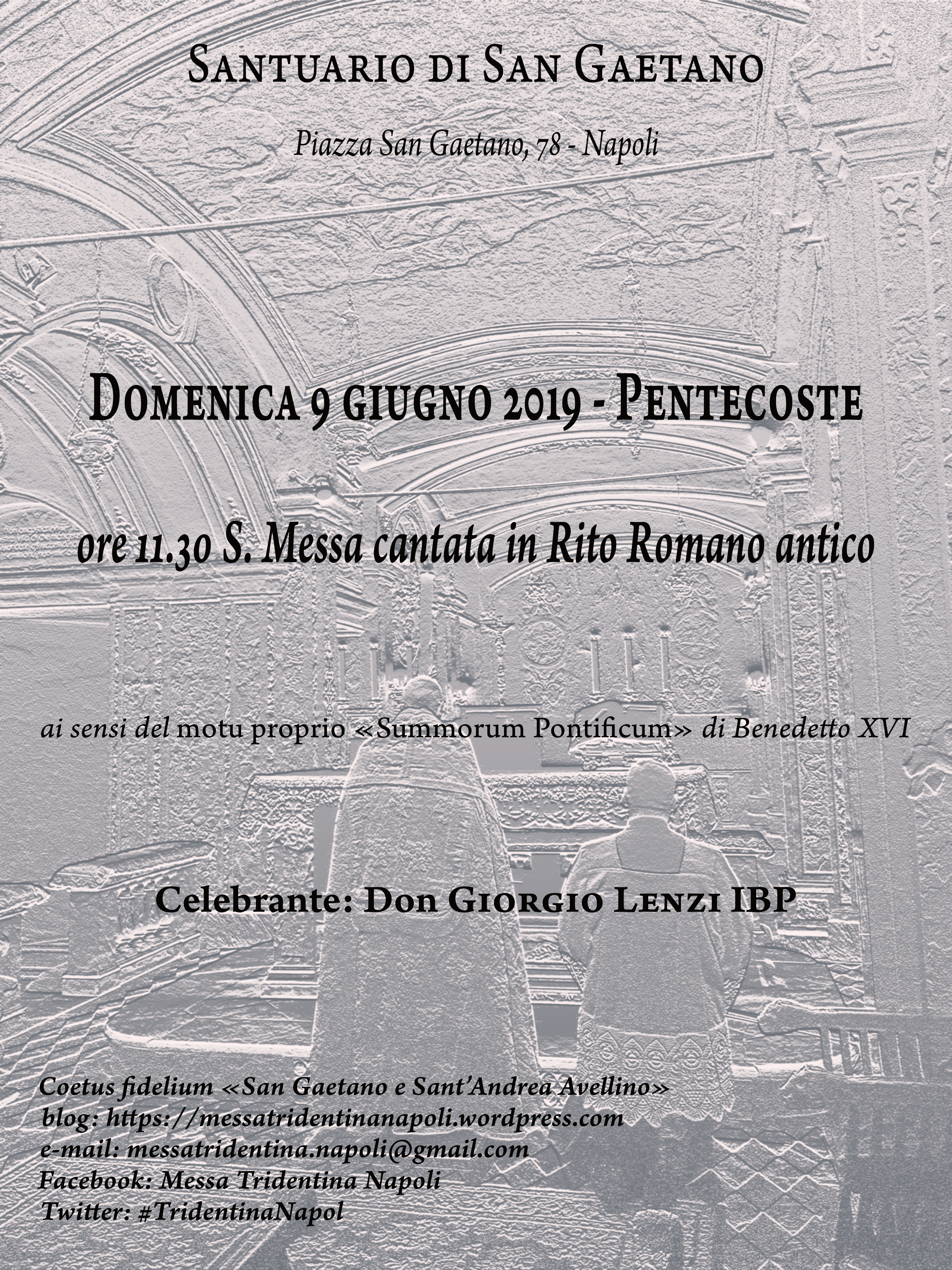 In allegato la locandina della S. Messa di Pentecoste. Si segnala altresì che domani, sabato 8 giugno, alle ore 11.30, presso la Basilica di S. Paolo Maggiore, sarà celebrata una Santa Messa in Rito Romano antico da P. Aleksander Sebastian Iwaszczonek CR.
