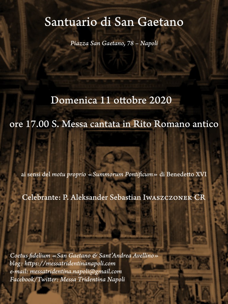 N.B. A partire da oggi la S. Messa domenicale in Rito Romano antico verrà celebrata alle ore 17.00