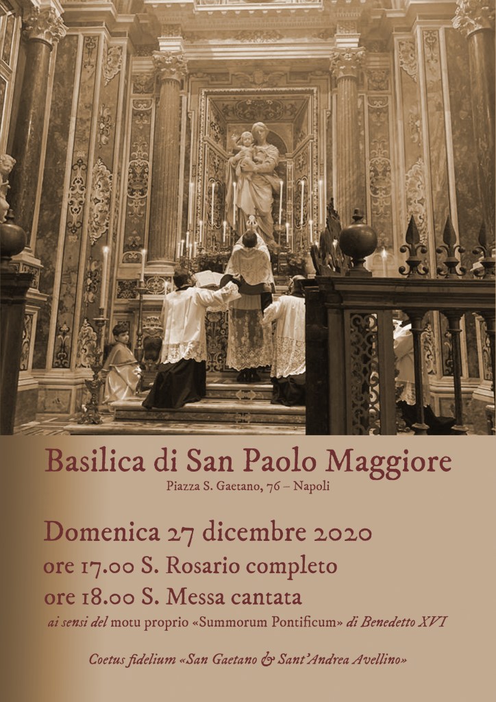ore 12.00 S. Messa in Rito Romano antico – Basilica di San Paolo Maggiore (ingresso dal Santuario di San Gaetano)