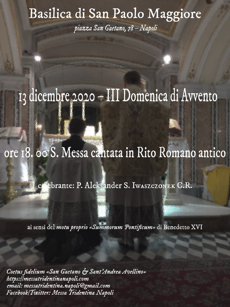 Sabato 12 e domenica 13 dicembre: SS. Messe in Rito Romano antico nella Basilica di San Paolo Maggiore