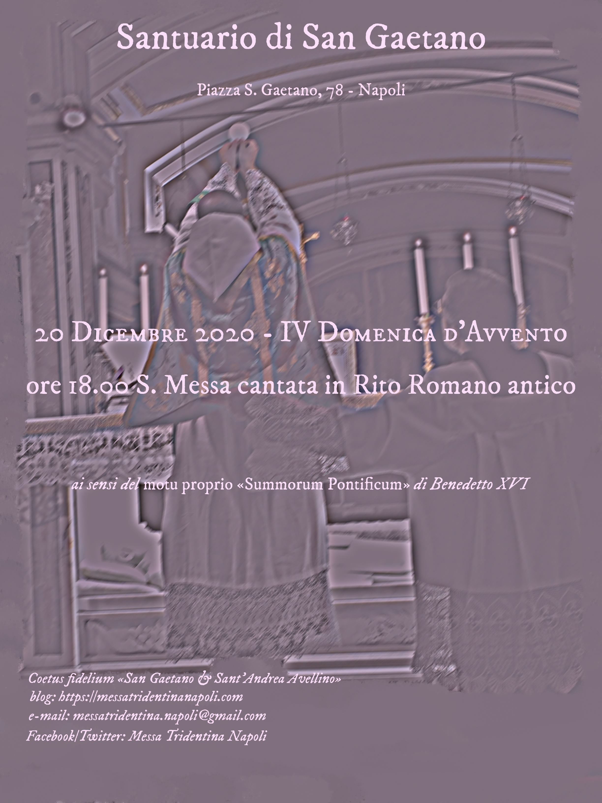 ore 18.00 S. Messa in Rito Romano antico nel Santuario di San Gaetano (ingresso dall’entrata laterale, in Vico Cinque Santi)