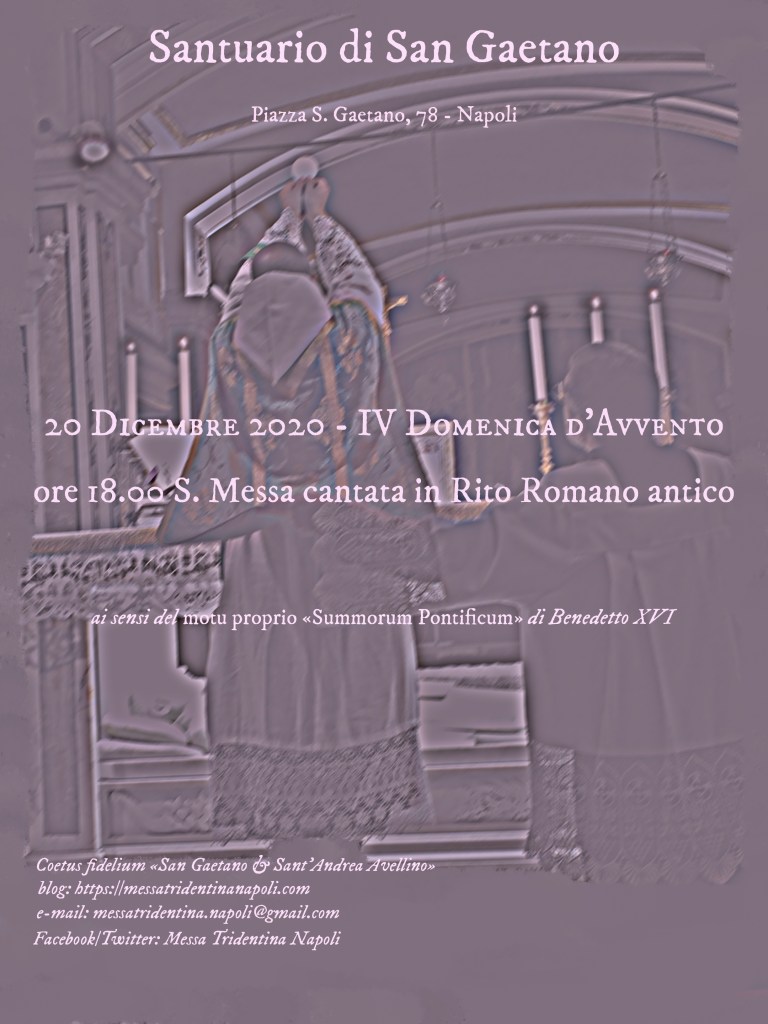 Sabato 19, domenica 20 e mercoledí 23 dicembre: SS. Messe in Rito Romano antico nel Santuario di San Gaetano