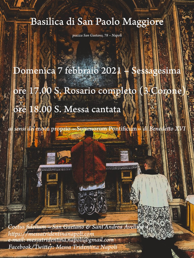 Napoli, Domenica 7 febbraio 2021 (Sessagesima), Basilica di San Paolo Maggiore, ore 18.00: S. Messa cantata in Rito Romano antico Immagine6 febbraio 2021messatridentinanapoli Lascia un commento