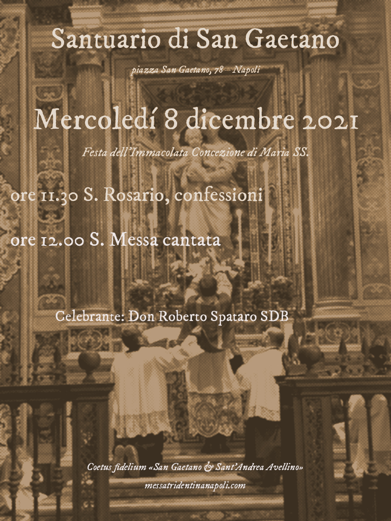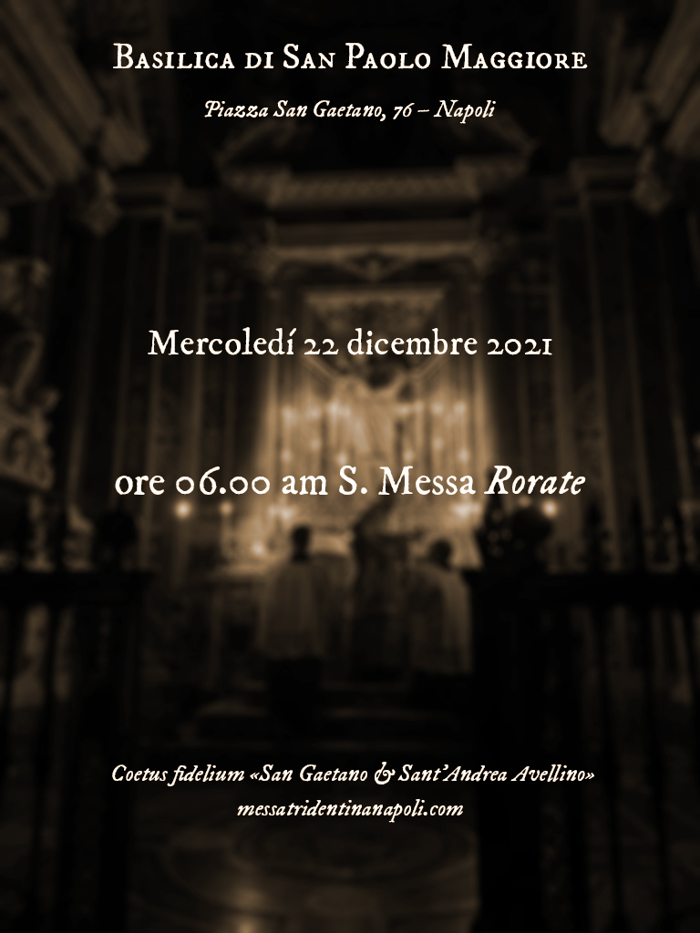 AGGIORNAMENTO: la porta principale della Basilica (Via Tribunali 76) sarà aperta: non c’è bisogno di prendere l’entrata laterale. Ci scusiamo per il disguido.