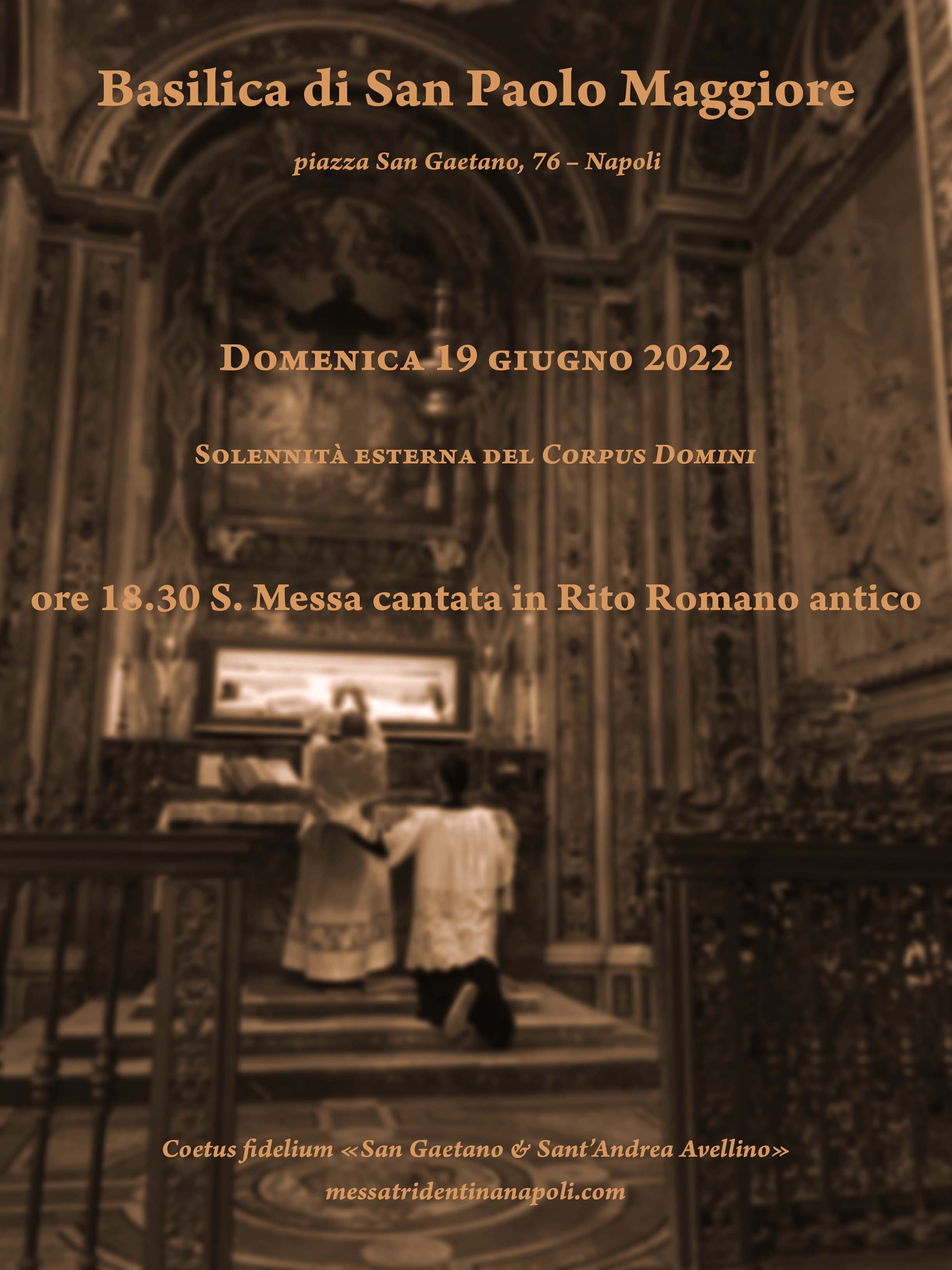 Domenica 19 maggio 2022, solennità esterna del Corpus Domini: S. Messa cantata in Rito Romano antico Immagine18 giugno 2022messatridentinanapoli Lascia un commento