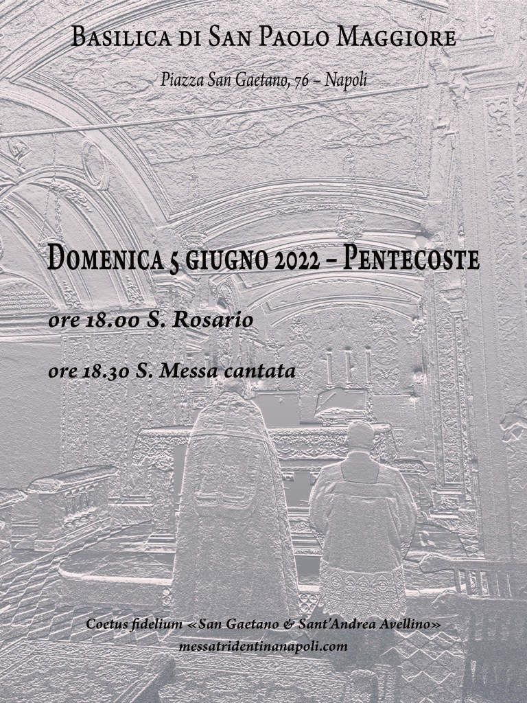 Domenica 5 giugno 2022, Pentecoste: S. Messa cantata in Rito Romano antico Immagine4 giugno 2022messatridentinanapoli Lascia un commento
