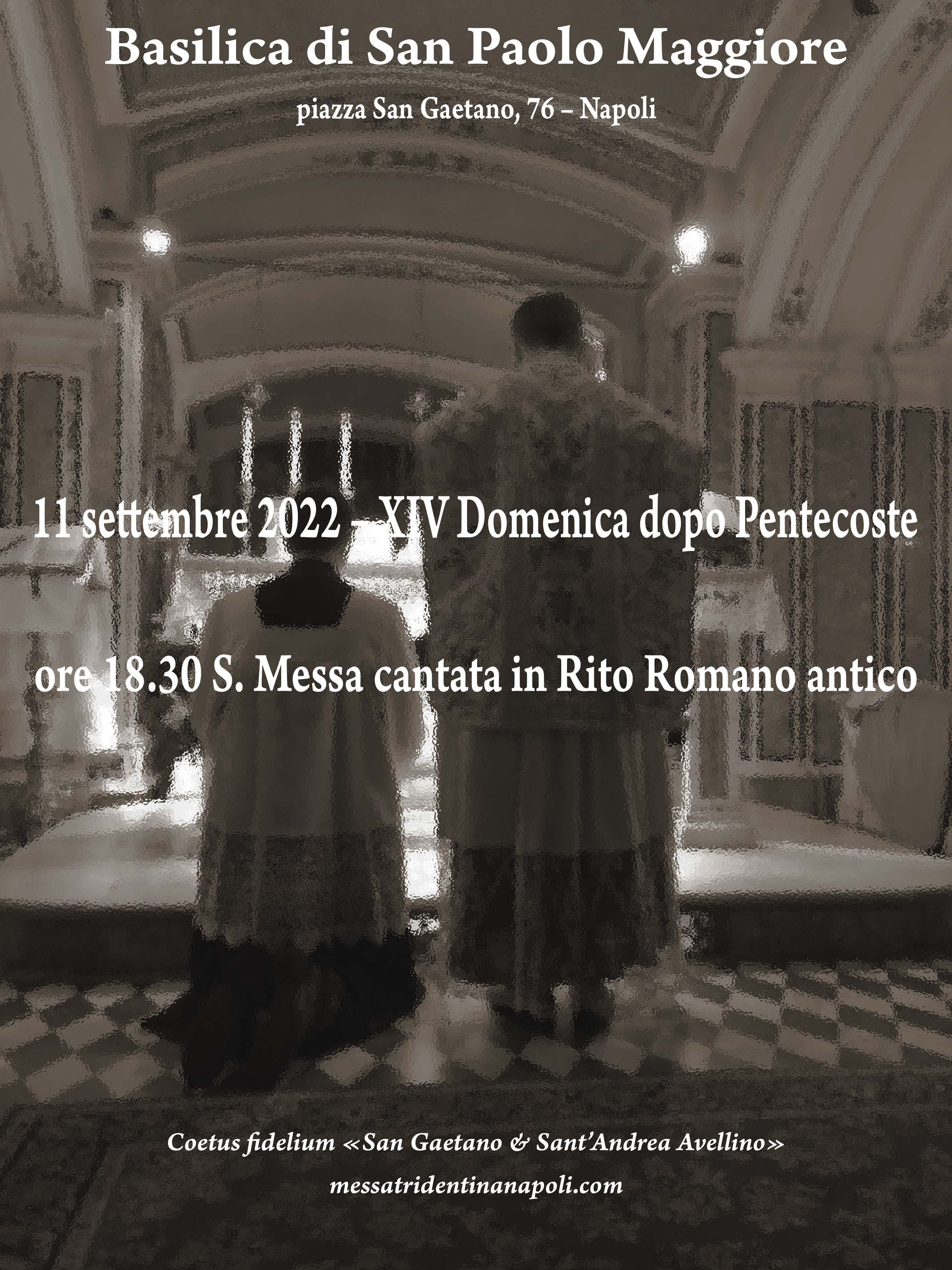 11 settembre 2022, XIV Domenica dopo Pentecoste: S. Messa in Rito Romano antico, ore 18.30