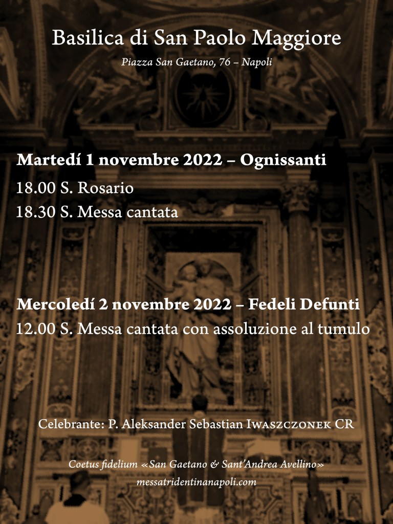 1-2 novembre 2022: SS. Messe in Rito Romano antico Immagine31 ottobre 202231 ottobre 2022messatridentinanapoli Lascia un commento Condividi: Fai clic per condividere su X (Si apre in una nuova finestra) X Fai clic per condividere su Facebook (Si apre in una nuova finestra) Facebook Fai clic per condividere su Telegram (Si apre in una nuova finestra) Telegram Fai clic per condividere su WhatsApp (Si apre in una nuova finestra) WhatsApp Mi piace Caricamento... Correlati