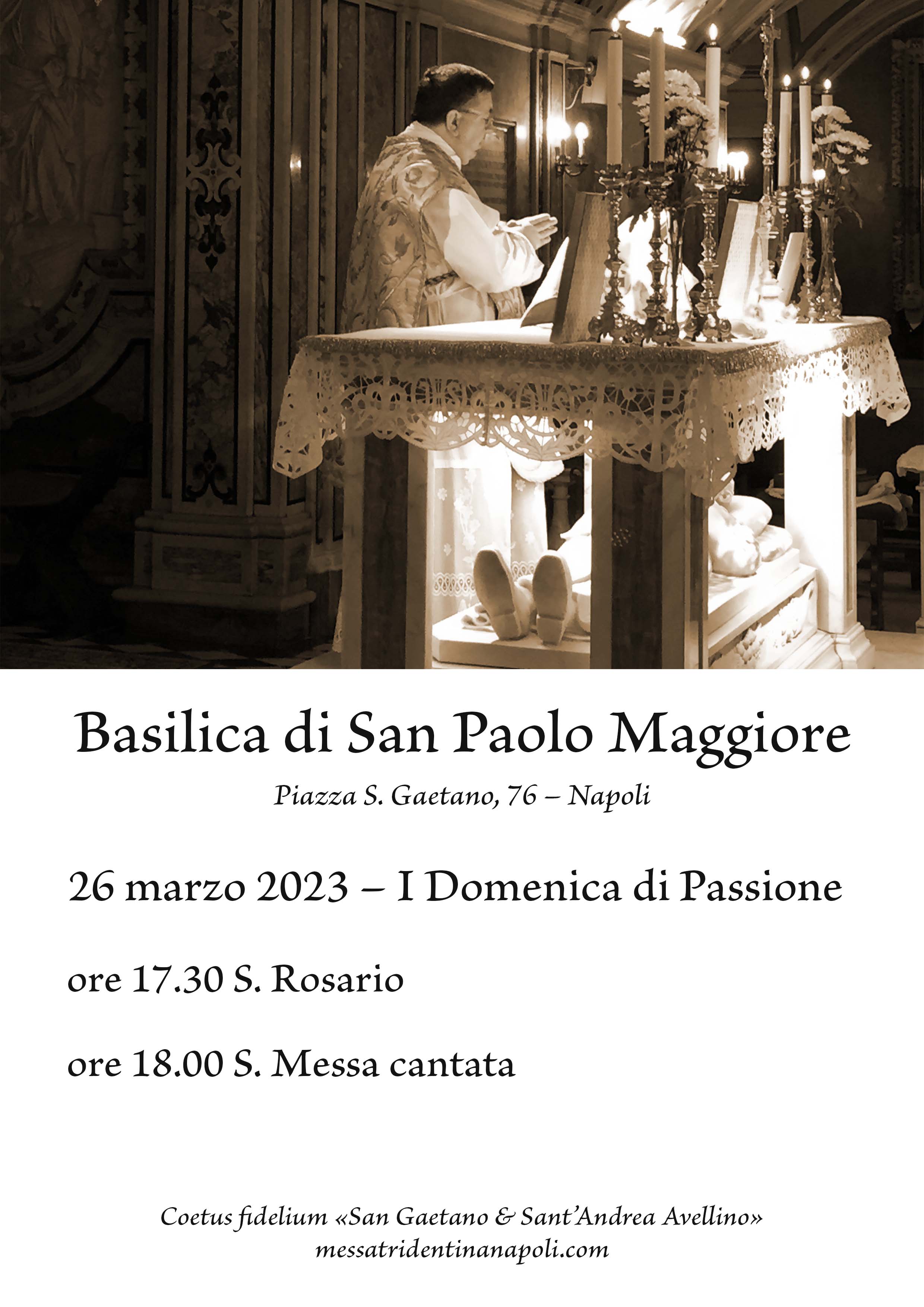 26 marzo 2023, I Domenica di Passione: S. Messa cantata in Rito Romano antico Immagine25 marzo 2023messatridentinanapoli Lascia un commento