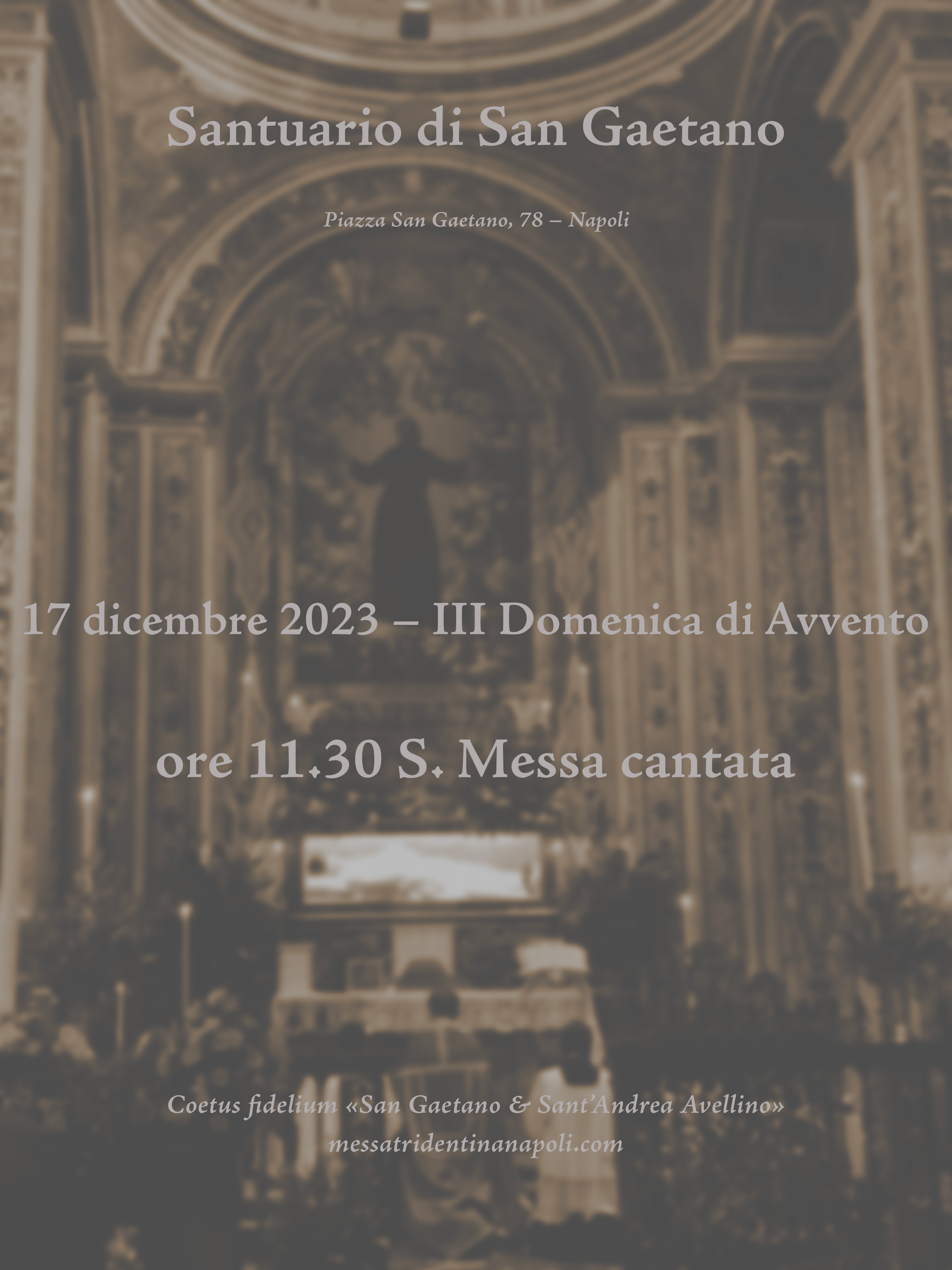 Ore 11.30 S. Messa cantata in Rito Romano antico