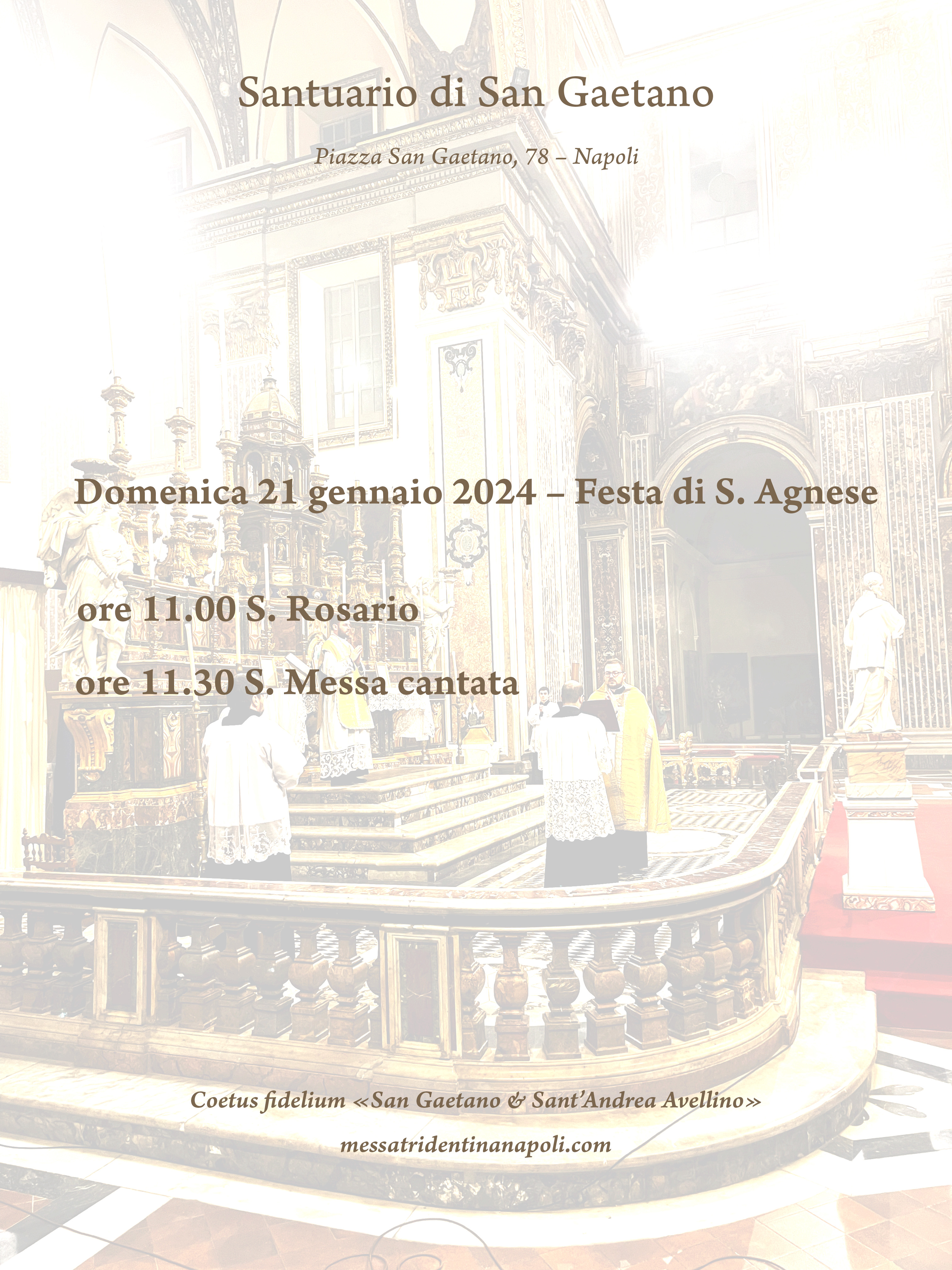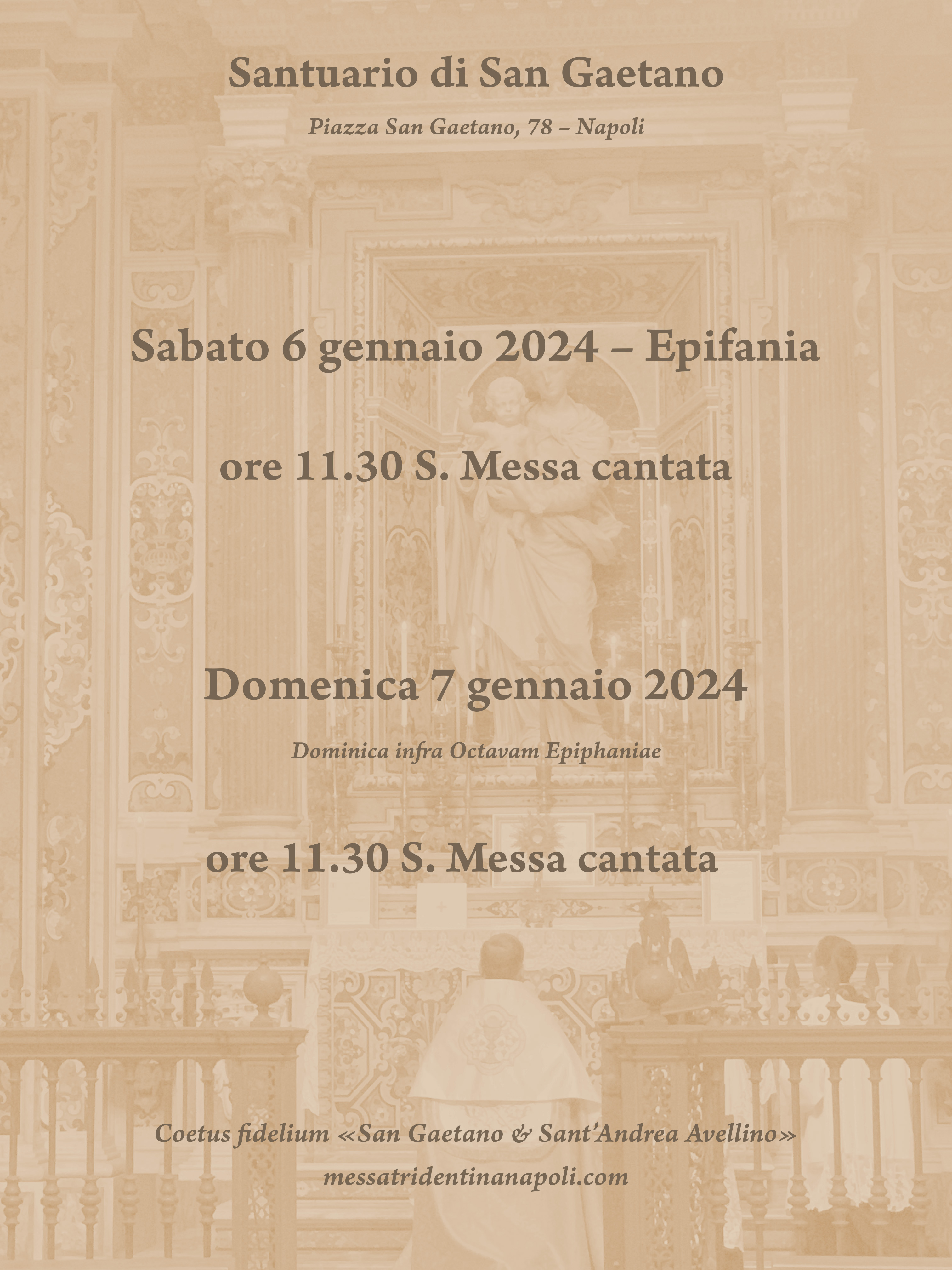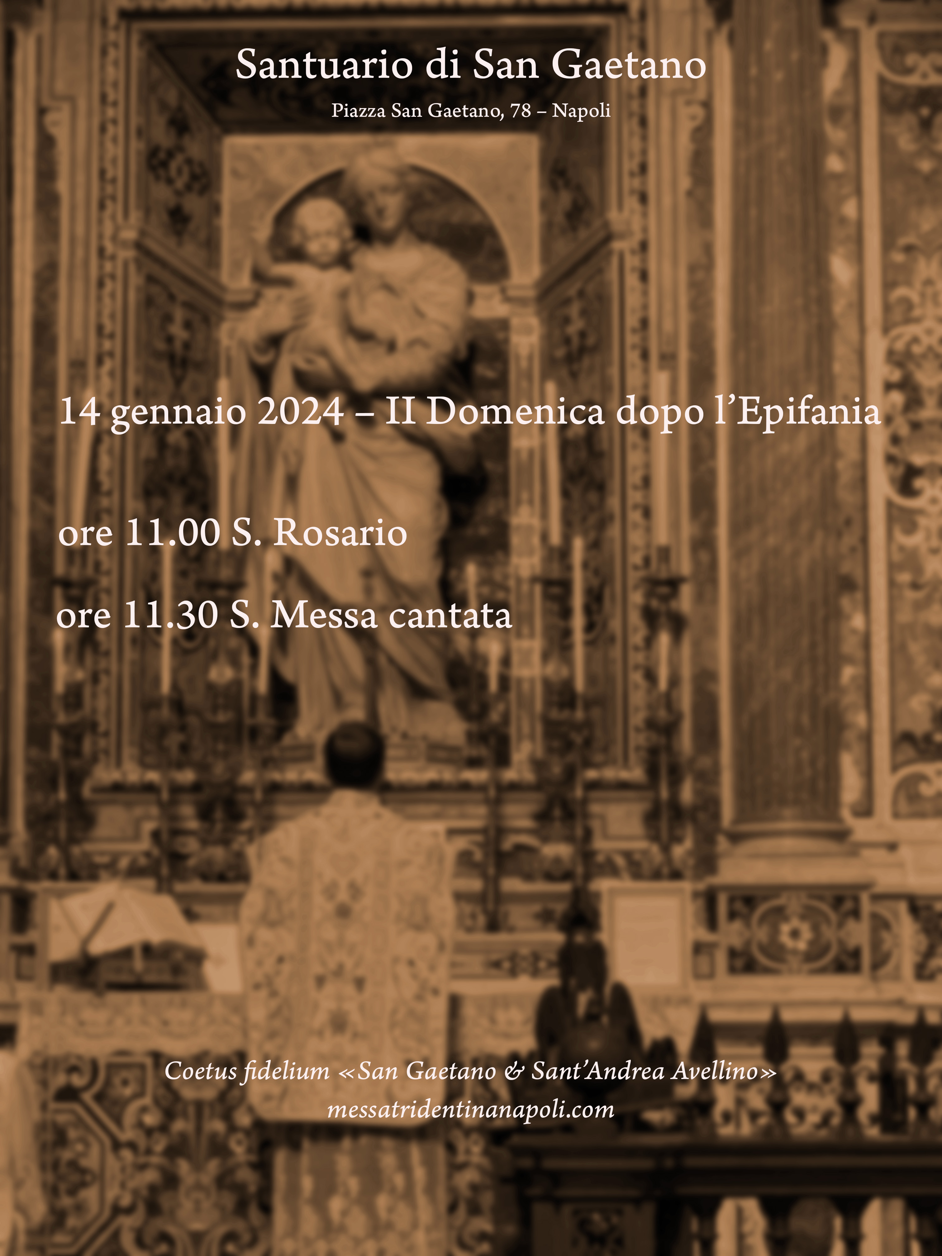 In questi ormai dieci anni di attività, il nostro Coetus fidelium «San Gaetano & Sant’Andrea Avellino» ha sempre cercato di non gravare mai economicamente sui lettori del blog, evitando qualunque richiesta di danaro a titolo di sostegno. Attualmente, tuttavia, stiamo vivendo un momento alquanto impegnativo e ci troviamo a sostenere spese di diverso tipo, non ultime quelle per la gestione del sito e del dominio “messatridentinanapoli”. Se qualcuno – naturalmente chi può – volesse sostenerci, donando un contributo anche minimo, ci riuscirebbe di grande aiuto. Possa la Madonna, con San Gaetano e Sant’Andrea Avellino, benedire tutti coloro che risponderanno a tale appello. Nel mese di febbraio provvederemo a far celebrare una S. Messa in Rito Romano antico per tutti i benefattori. Grazie.