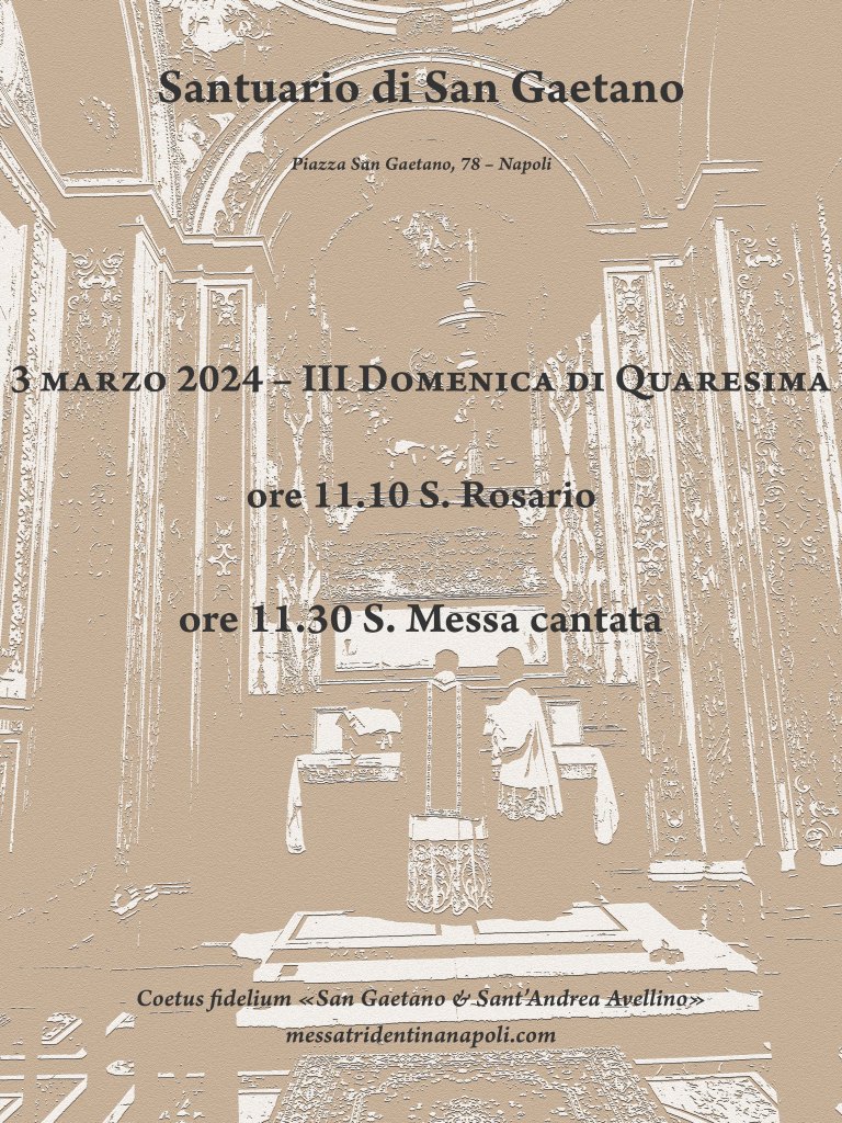 17 marzo 2024, I Domenica di Passione: S. Messa cantata in Rito Romano antico nel Santuario di San Gaetano, ore 11.30