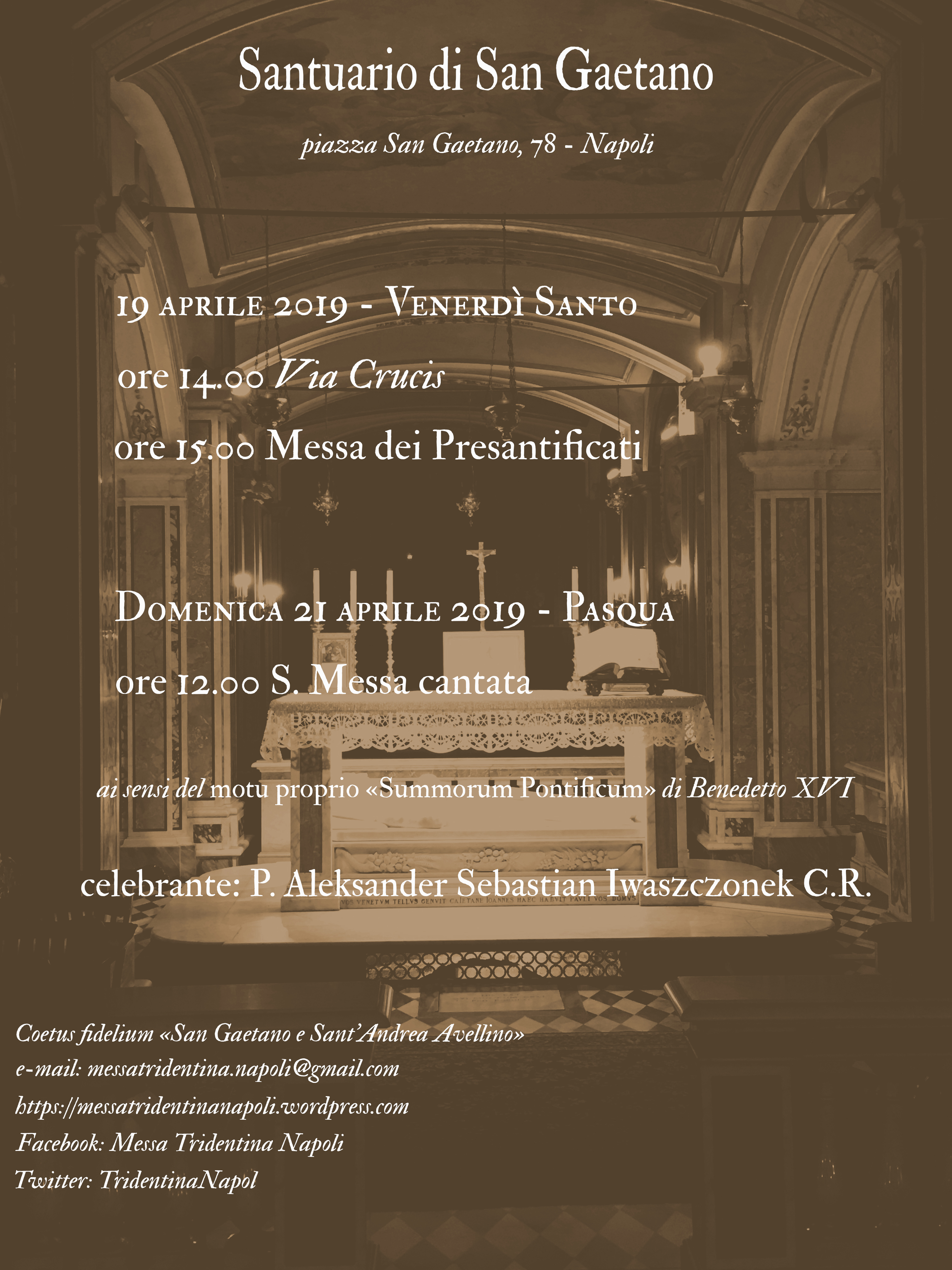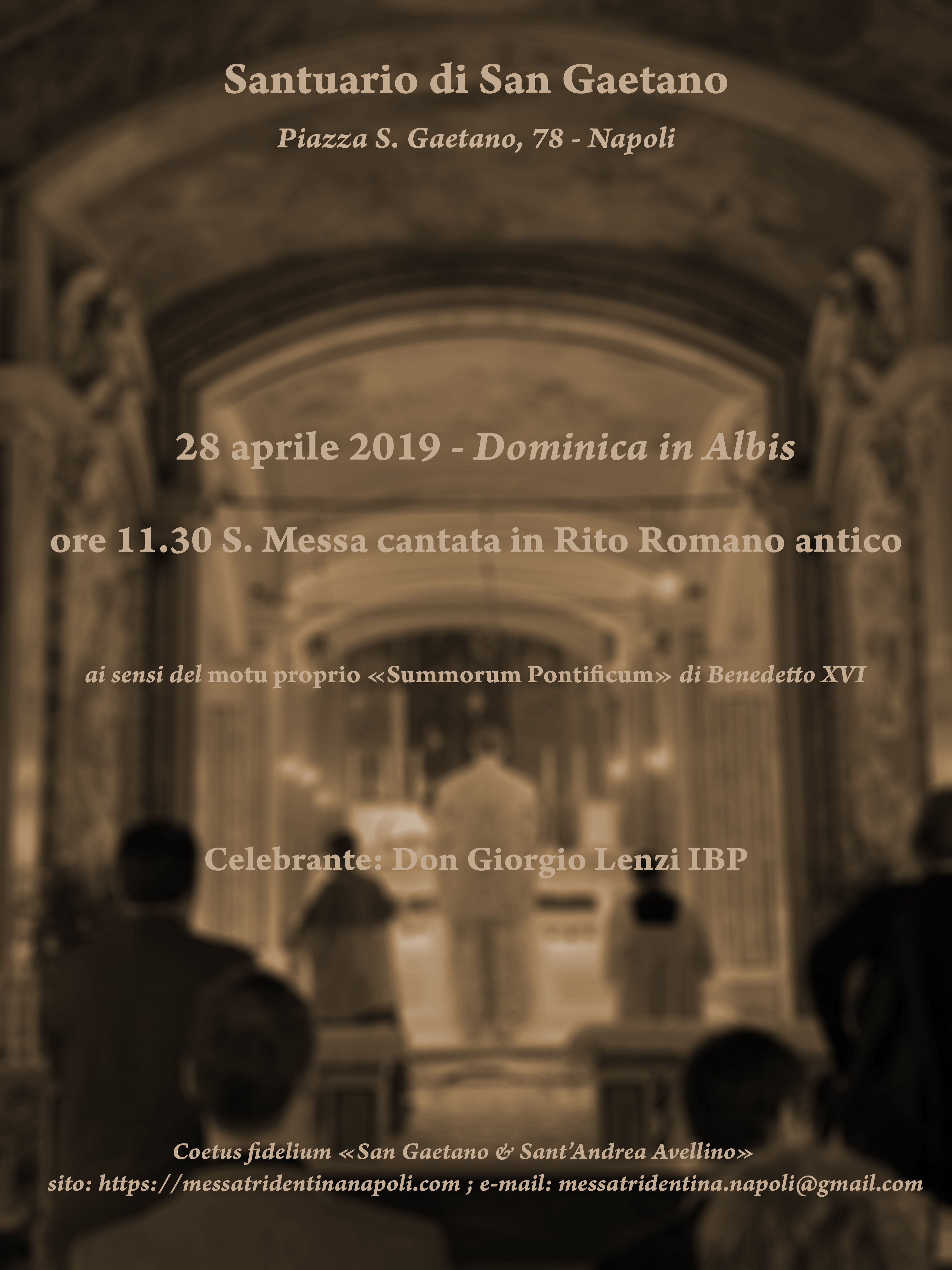 Napoli, Santuario di San Gaetano, Domenica 5 maggio 2019, Festa della Translazione delle Reliquie di San Gennaro. S. Messa cantata in Rito Romano antico. Celebrante: Don Giorgio Lenzi IBP.