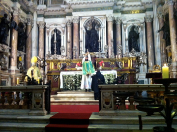 Lo scorso 27 luglio, come annunziato nel post precedente, Don Roberto Spataro, giovane Sacerdote salesiano, Segretario della Pontificia Academia Latinitatis, istituita da Benedetto XVI con il motu proprio Lingua Latina del 10 novembre 2012 al fine di promuovere lo studio e la conoscenza del latino all’interno della Chiesa, e docente di Letteratura cristiana antica presso la Pontificia Università Salesiana, ha offerto il Santo Sacrificio della Messa secondo l’Usus antiquior del Rito Romano nella forma letta cum canticis nella Parrocchia di S. Anna, Gesù e Maria di Bacoli, a conclusione dei festeggiamenti per la festa della Patrona. In una Chiesa gremita di fedeli (oltre 100), soprattutto bacolesi, che con devozione e silenzio hanno assistito alla celebrazione, Don Spataro ha tenuto un’omelia molto apprezzata per la chiarezza metodologica e intellettuale, articolata in tre punti: