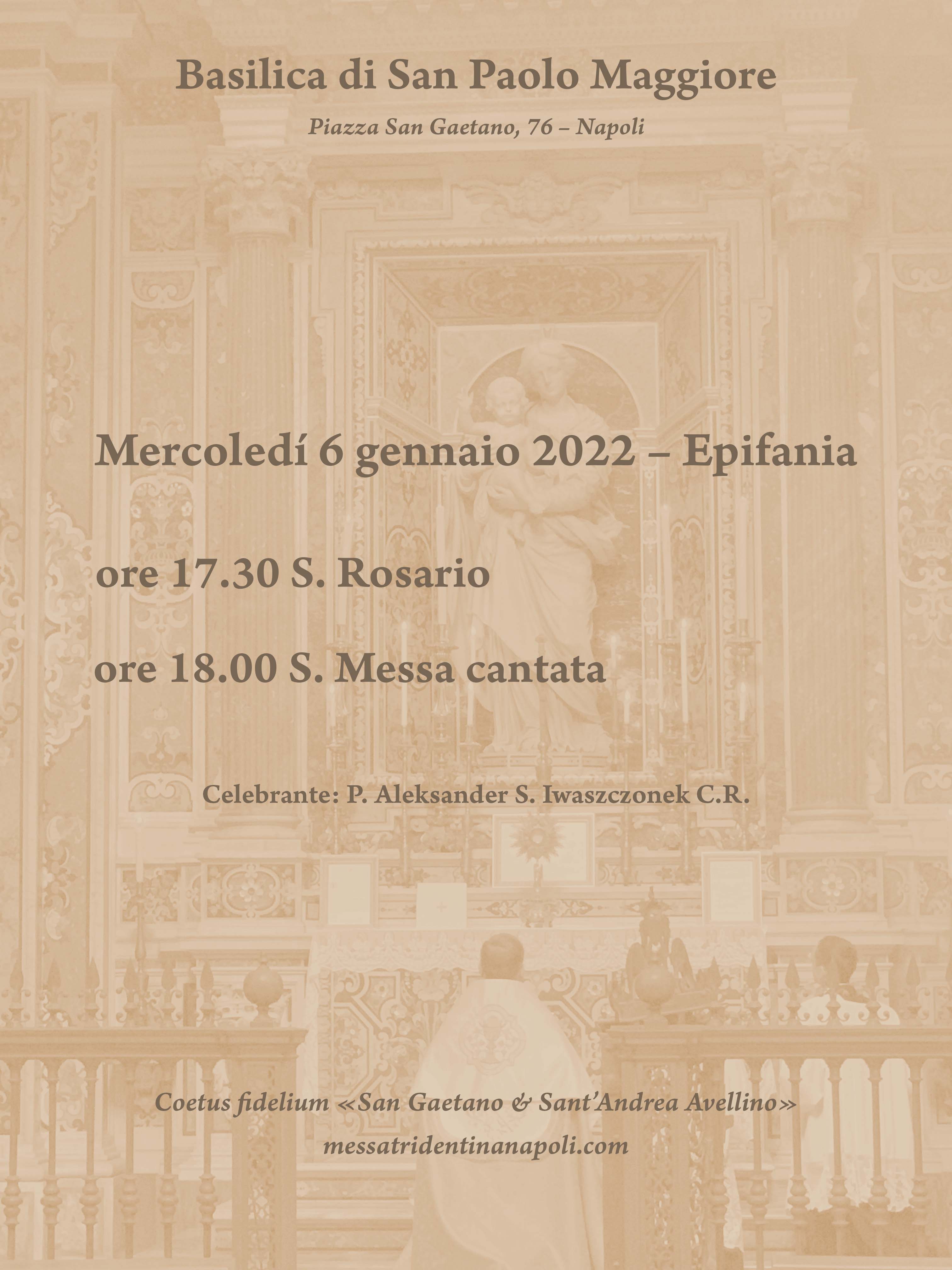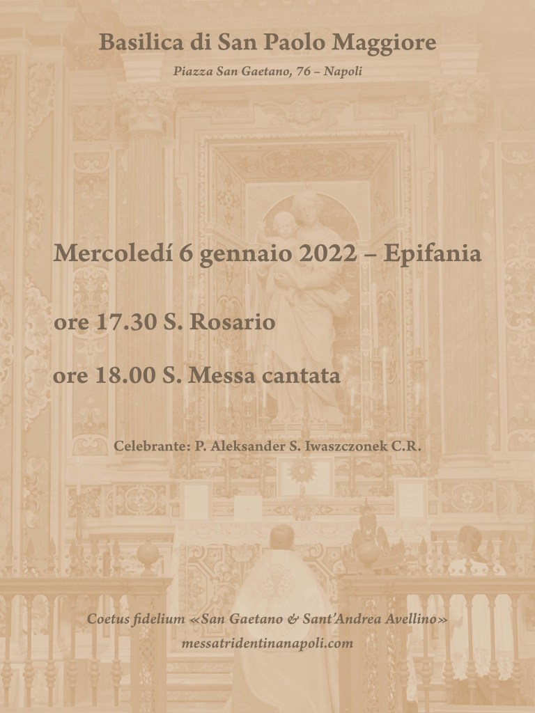 Mercoledí 6 gennaio 2022, Epifania: S. Messa cantata in Rito Romano antico Immagine5 gennaio 2022messatridentinanapoli Lascia un commento
