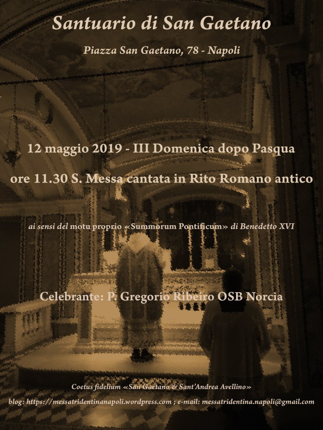 Napoli, 12 maggio 2019, III Domenica dopo Pasqua: S. Messa cantata in Rito Romano antico celebrata da P. Gregorio Ribeiro, OSB Norcia